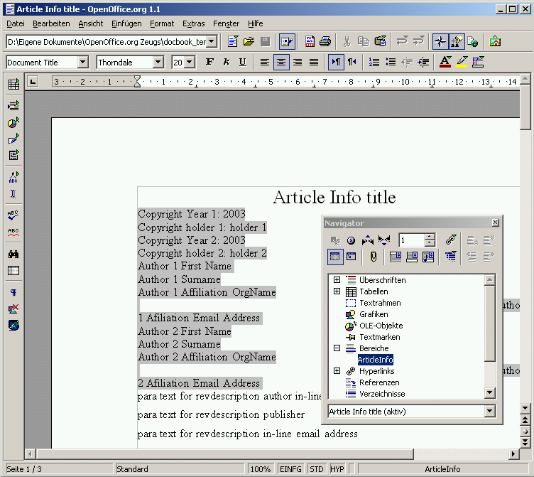 OpenOffice.org als DocBook-XML-Editor